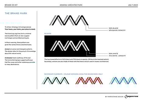 A brand identity developed for an architectural designer who creates functional, practical and accessible spaces which embody Te Ao Maori into the designed framework.